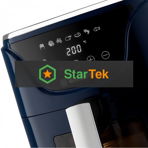 Аэрогриль BRAYER BR2036 синего цвета, мощностью 1500 Вт и вместимостью 5 л. Оснащён сенсорным управлением, 7 preset-программами и удобной панелью для точной настройки времени и температуры. Компактный корпус и современные функции делают его практичным выбором для здорового и быстрого приготовления пищи.