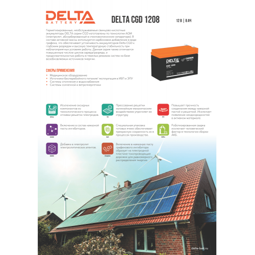 Аккумуляторная батарея Delta CGD 1208 напряжение 12В, емкость 8Ач (151x65x100mm)