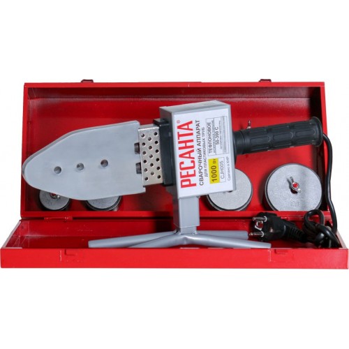 | Особенности | Удобный металлический кейс помогает удобно хранить, перевозить и пользоваться аппаратом. 6 пар насадок в комплекте - подойдут для всех видов использующихся труб, диаметром 20, 25, 32, 40, 56, 63 мм. Автоматический термостат будет поддерживать заданную температуру от 50 до 300 град. |