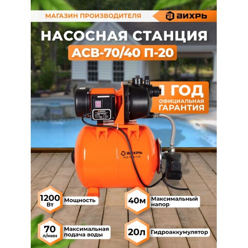 Автономная станция водоснабжения Вихрь АСВ-70/40 П-20 представляет собой комплект электрических водяных насосов для автономного водоснабжения. Устройство обеспечивает устойчивый напор и стабильную подачу воды, подходит для бытовых и дачных систем. Простота эксплуатации, надежные материалы и компактные размеры делают монтаж удобным, а сервисное обслуживание — минимальным.