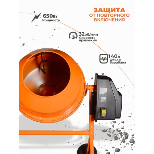 Бетономешалка Вихрь БМ-140 (74/1/6) 650 Вт, 140 л, чугунный венец, 32 об/мин