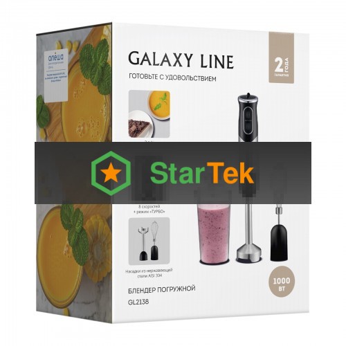 Блендер Galaxy Line GL 2138, черный, погружной, 1000 Вт, 17 000 об/мин, 8 скоростей + режим "ТУРБО"