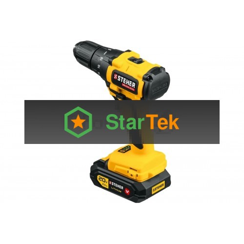 Дрель-шуруповерт STEHER CDB-200-1, Аккумуляторная, 20В, Кейс