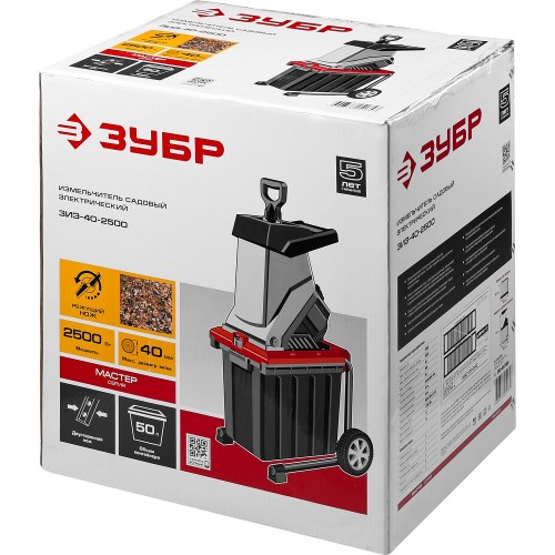 Измельчитель садовый электрический Зубр ЗИЭ-40-2500 р/с 40 мм, контейнер 50 л, 2500 Вт
