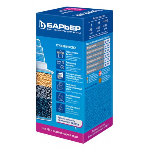 | описание | Высококачественная доочистка водопроводной воды от хлора, хлорорганики, тяжелых металлов, пестицидов, ПАВ и нефтепродуктов. Подходит для всех фильтров-кувшинов БАРЬЕР. |