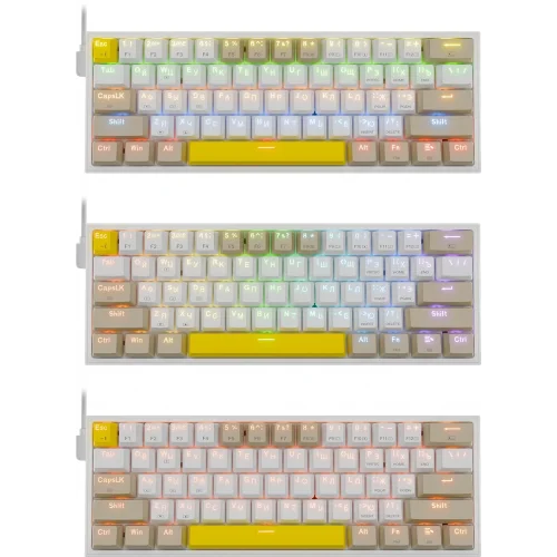 Клавиатура REDRAGON (72596) Fizz RU — компактная модель с разноцветной подсветкой Rainbow и желто-бежевой расцветкой. Оснащена красными механическими свитчами, обеспечивает плавное нажатие и удобное позиционирование клавиш. Подходит для регулярного набора текста и игр, отличается стильным дизайном и надёжной сборкой.