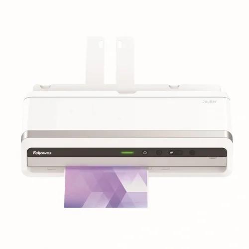 Ламинатор Fellowes Jupiter A3 FS-57484 75–250 мкм: скорость до 140 см/мин, нагрев за 60 сек, технология AutoSense и Auto Temperature Sensor (APTS), 6 валов для равномерной вентиляции и плотного склеивания, поддерживает тонкости 75–250 мкм. Идеален для быстрого и качественного ламинирования документов формата А3 в офисной среде.