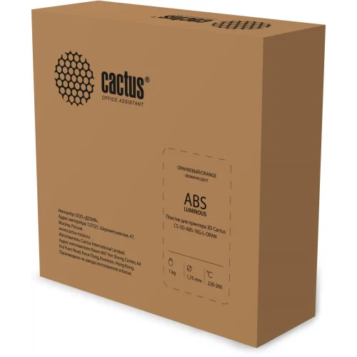 Пластик для принтера 3D Cactus CS-3D-ABS-1KG-L-ORAN ABS LUMINOUS d1.75мм 1кг 1цв.