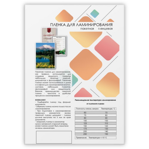 Пленка 216х303 (80 мик) 100 шт. Гелеос (LPA4-80)