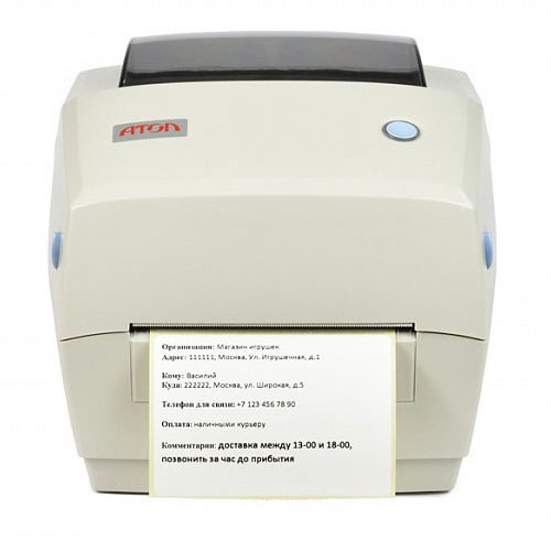 Принтер этикеток Атол ТТ41 — термотрансферное решение для печати чеков, этикеток и штрихкодами с разрешением 203 dpi и скоростью до 102 мм/с. Компактный серый корпус, интерфейс USB, надежная производительность и удобство эксплуатации подходят для магазинов, складов и точек продаж. Поддерживает различные методы печати, обеспечивая четкость и долговечность тегов.