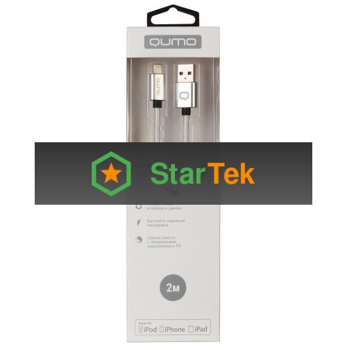 Qumo MFI кабель c разъемом Apple 8 pin, 2м, металлический коннектор, в оплетке, темно серый