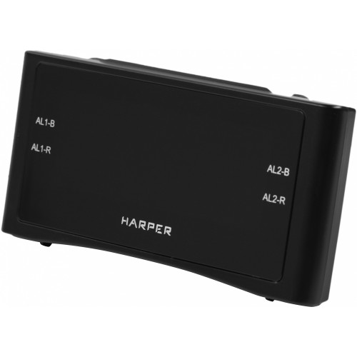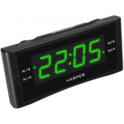 | Особенности | Два независимых будильника. Удобный ночник с гибко регулируемой подсветкой . Если вы любите засыпать под звуки радио, у Harper HCLK-1006 есть функция автоотключения (от 10 до 90 минут). В памяти можно сохранить до 20 каналов, любой из них можно выбрать вместо стандартной мелодии будильника. |
