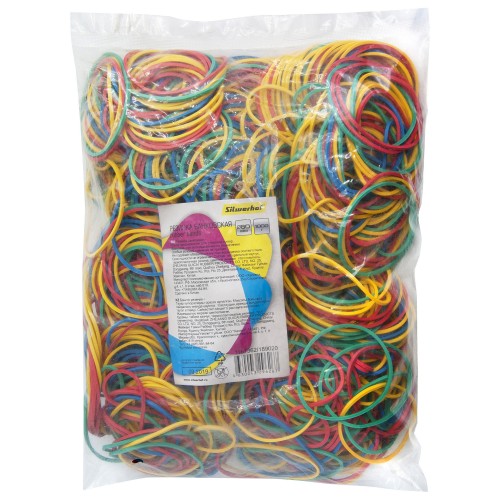 Резинки для купюр Silwerhof 189020 d=60 мм, ширина 2 мм, 1000 гр, ассорти, пластиковый пакет