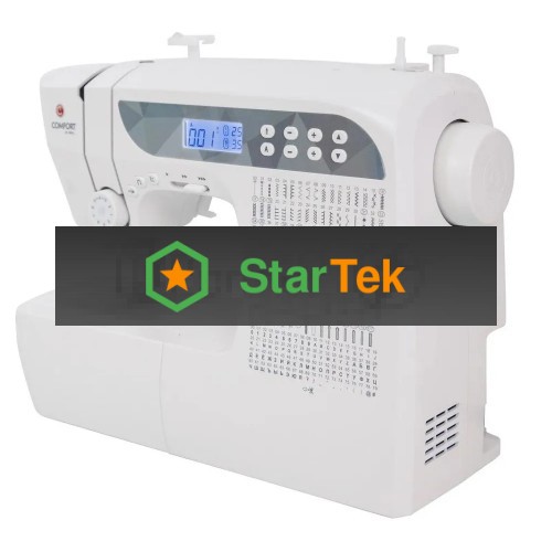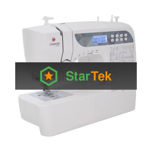 Швейная машина Comfort 1001 200 операций, 9 видов петель, жк дисплей, нитевдеватель, горизонтальный челнок, русск./англ. алфавит, плавная регулировка скорости на корпусе, регулятор давления лапки, нитевдеватель, возможность шитья двойной иглой, возможност