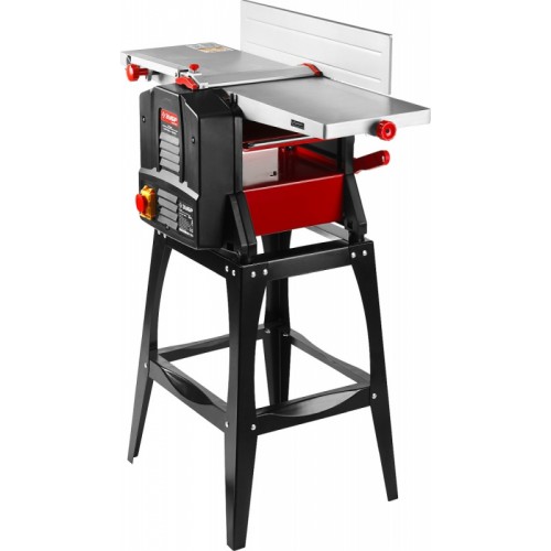 | Комплектация | Станок; Параллельный упор с креплением; Защитная планка с кронштейном; Пылесборник; Рукоятка; Фиксатор; Шаблон для установки ножей; Толкатель; Прижим - 2шт.; Набор ключей; Резиновая опора - 4шт.; Подставка; Набор крепежа |