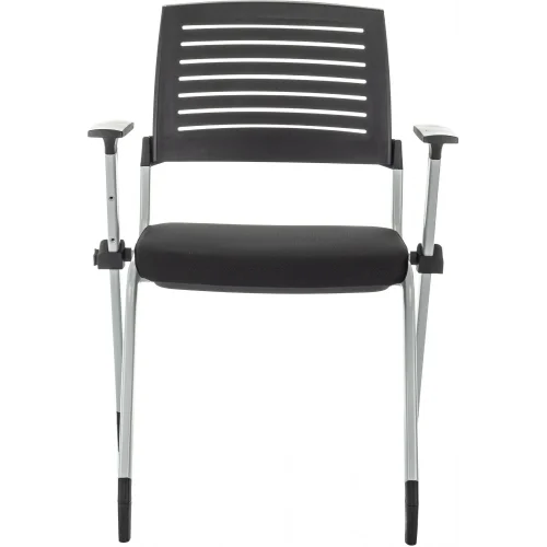 Стул Бюрократ X-Click черный на металлокаркасах серого цвета. Элегантный эргономичный профиль, устойчивость за счет усиленной ножки и надежной сборки. Подходит для офисов и рабочих зон, легко сочетается с современным интерьером и обеспечивает комфорт при длительном сидении. Материалы прочные и износостойкие, уход предпочтительно мягким средством.