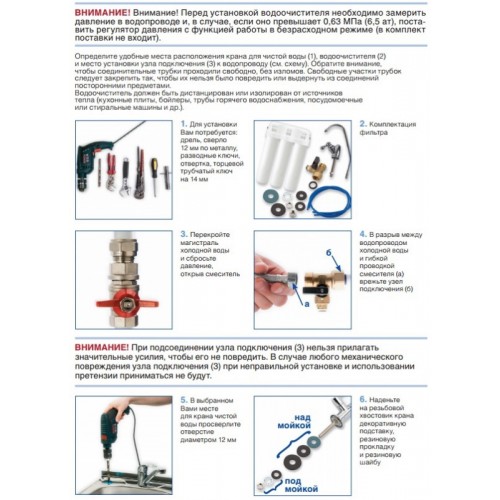 | Фильтры/картириджы в комплекте | Модуль K5 - Предварительная очистка воды. Модуль К2 - Глубокая доочистка воды. Модуль К7 - Финишная сорбционная очистка воды. |