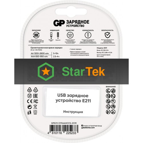 Зарядное устройство GP Rechargeable E211/270AAHCCS-2CR1 AA/AAA NiMH 2700mAh (2шт) блистер