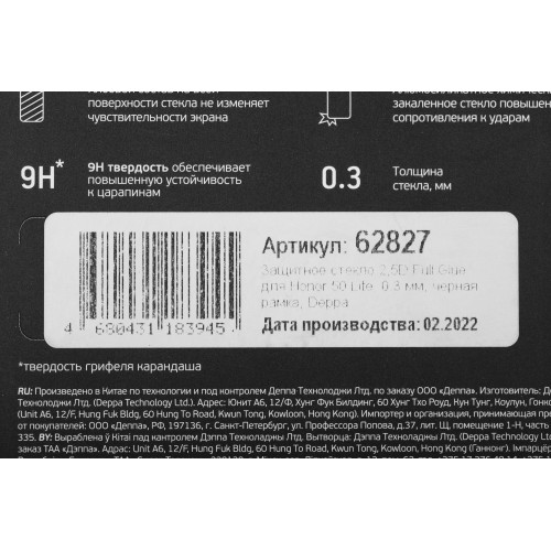 Защитное стекло для экрана Deppa 62827 для Honor 50 lite 2.5D, 1 шт
